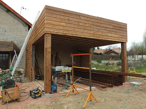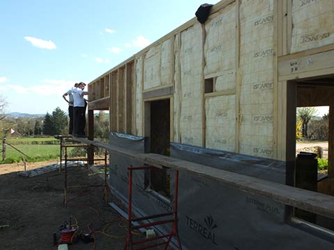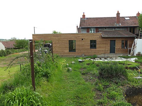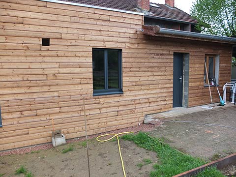 La pose du bardage en bois est réalisé ensuite… | |